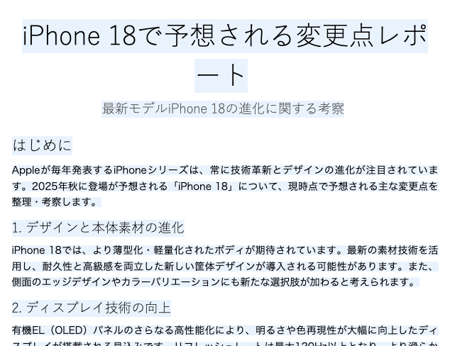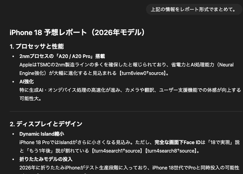 ChatGPTにiPhone18の予想される変更点をレポートにしてもらった。