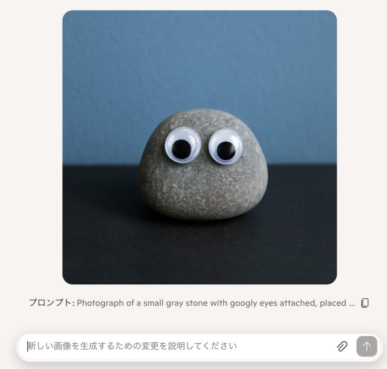 プロンプトをコピーして再利用したり、画像の一部を変更したりできる。試しに、「石の代わりに貝殻にして」とリクエストすると、テイストを保ちつつ、画像を生成してくれた。