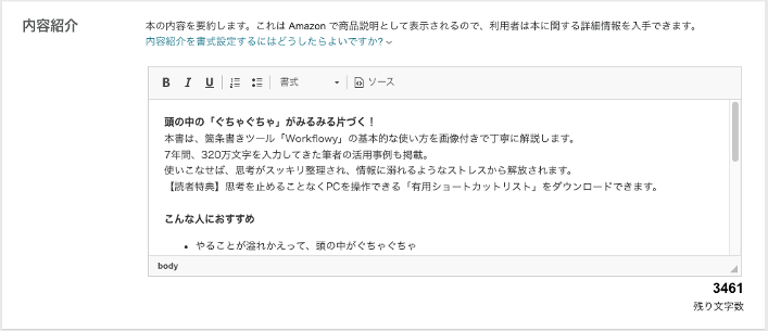 ここはAmazonの商品ページに直結する部分なので、誤字脱字に注意です!