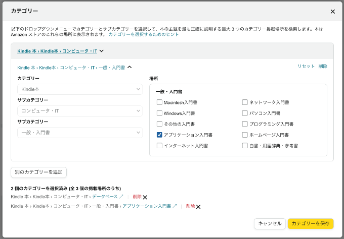 「カテゴリーを選択」ボタンを押して、自分の本に合うものを探しましょう。