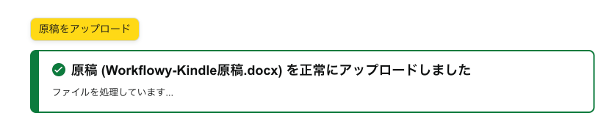 「原稿をアップロード」ボタンから、作成したWordファイルなどをアップします。
