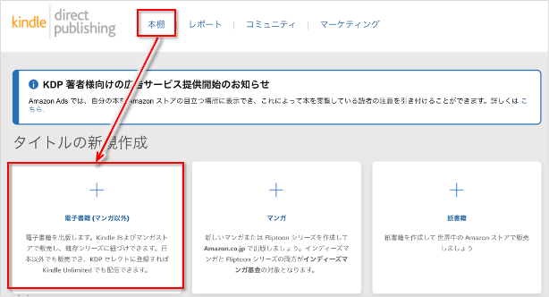 準備:KDPにログインして「Kindle本」を作成