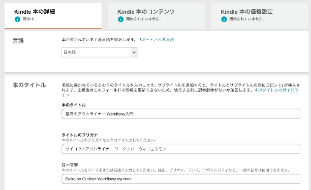 手順①:「Kindle本の詳細」を入力する