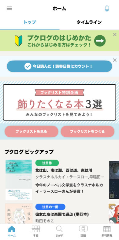 ブクログを開いてまず感じるのが、情報量の多さです。ピックアップ本、プレゼントキャンペーンや、ランキング、(あと広告も)などなど、読書にまつわる情報がたくさん。
